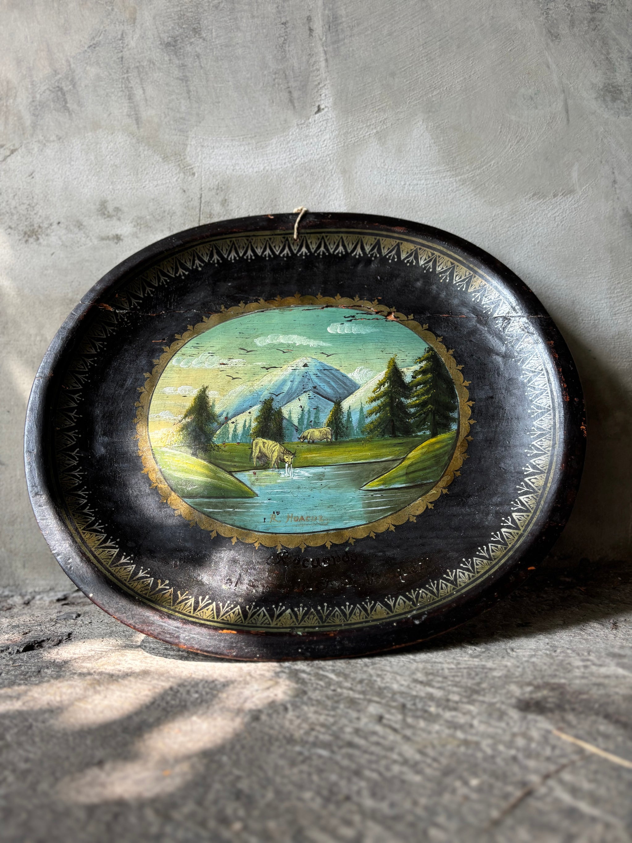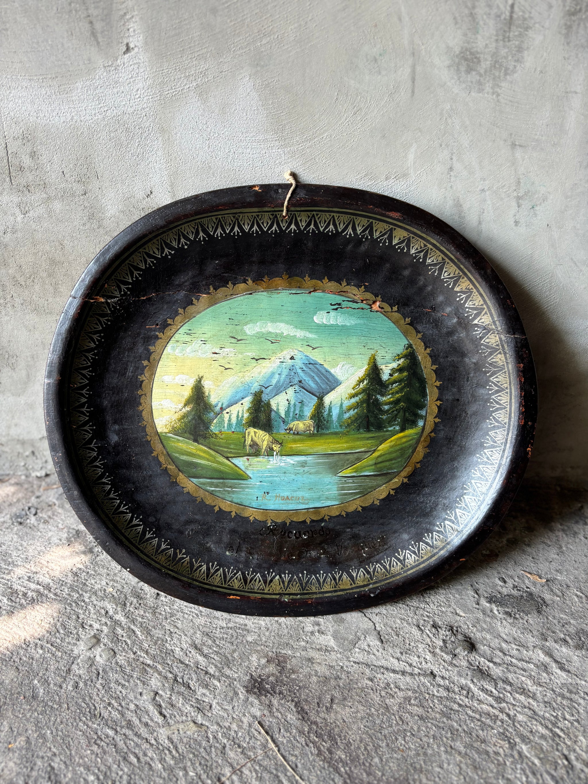 MedidasA. 2.5 cmsL. 38.5 cmsF. 34 cms Charola de madera tallada y pintada a mano,...