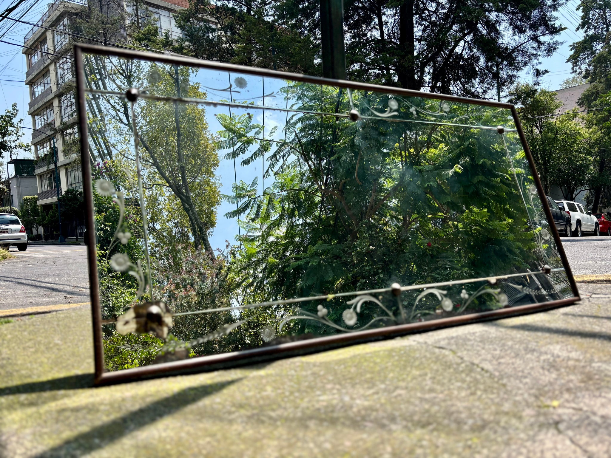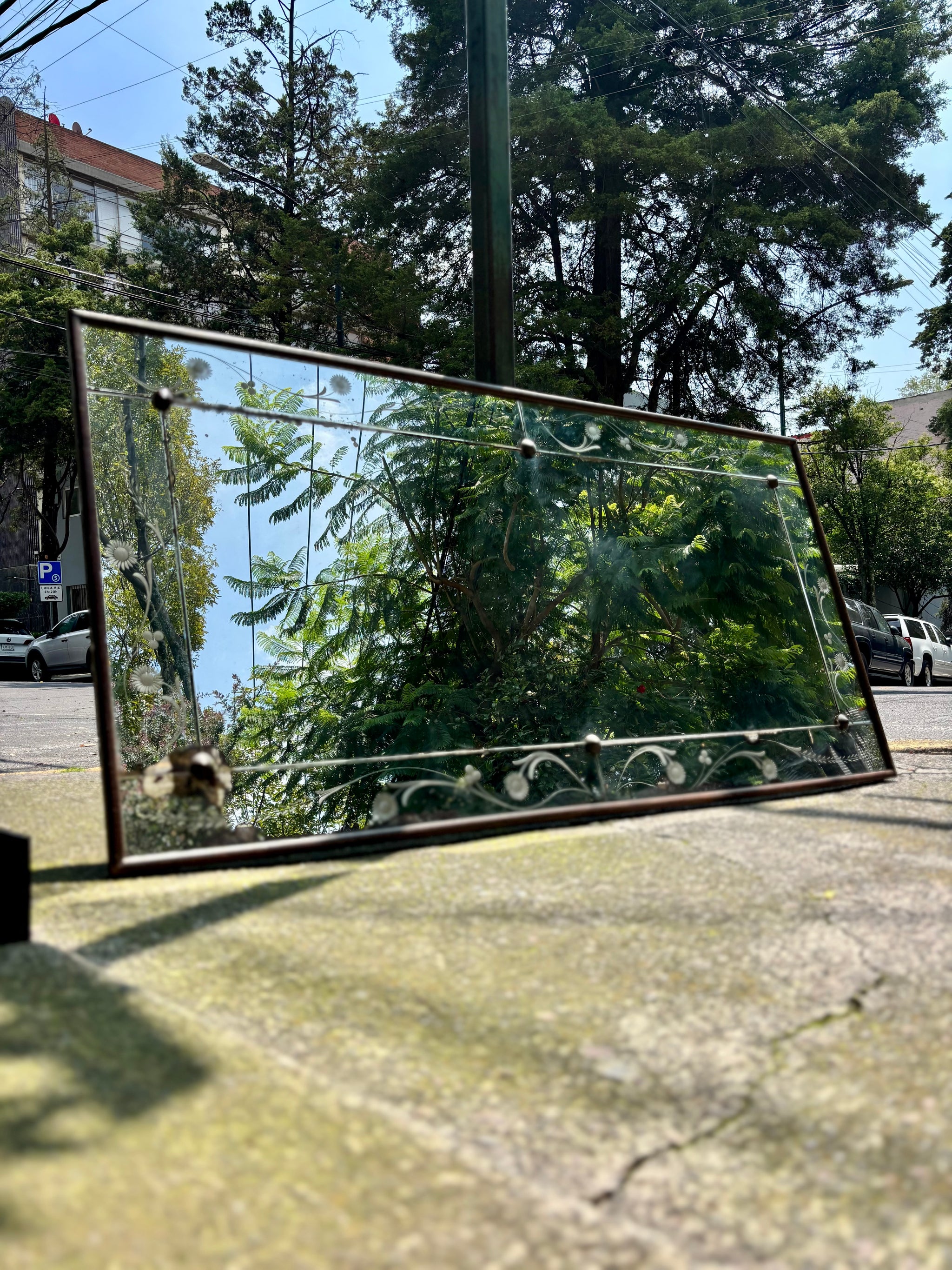 MedidasA. 72 cmsL. 1.43 cmsF. 3.5 cms Espejo rectangular de pepita con luna original, marco...