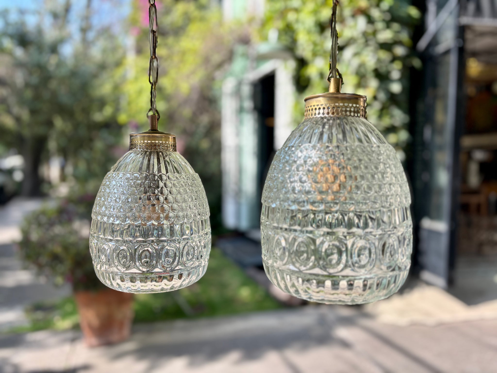 Precio por unidad! MedidasA. 23 cmsD. 15 cms Lámparas colgantes de vidrio grueso labrado con...