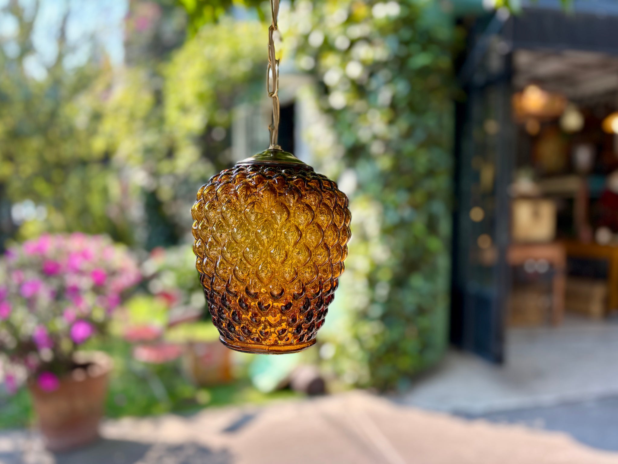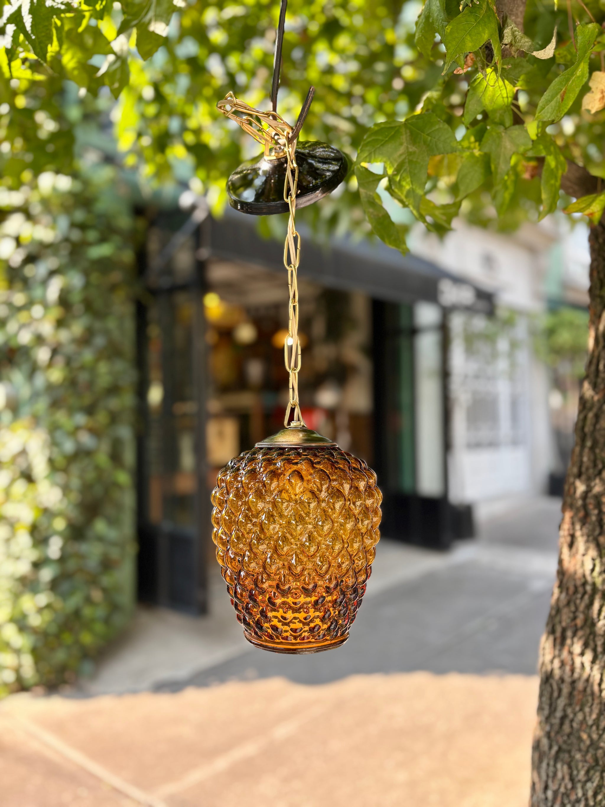 MedidasA. 20 cmsD. 15 cms Lámpara de cristal con pantalla ámbar en forma de piña...