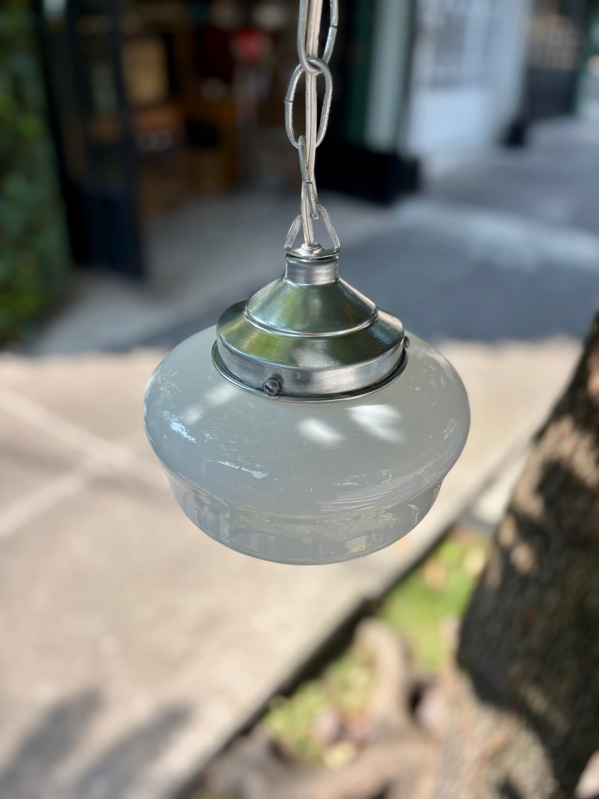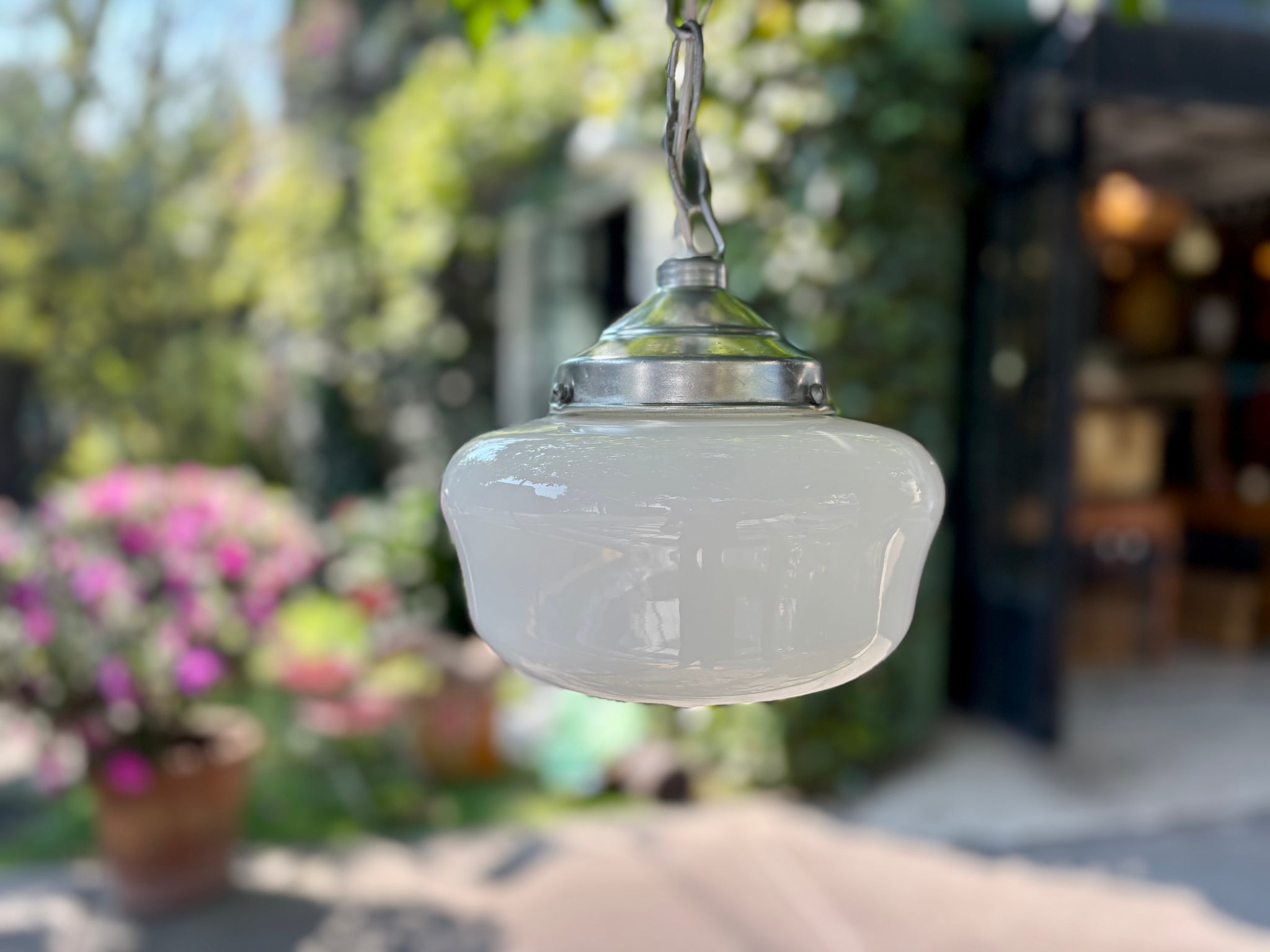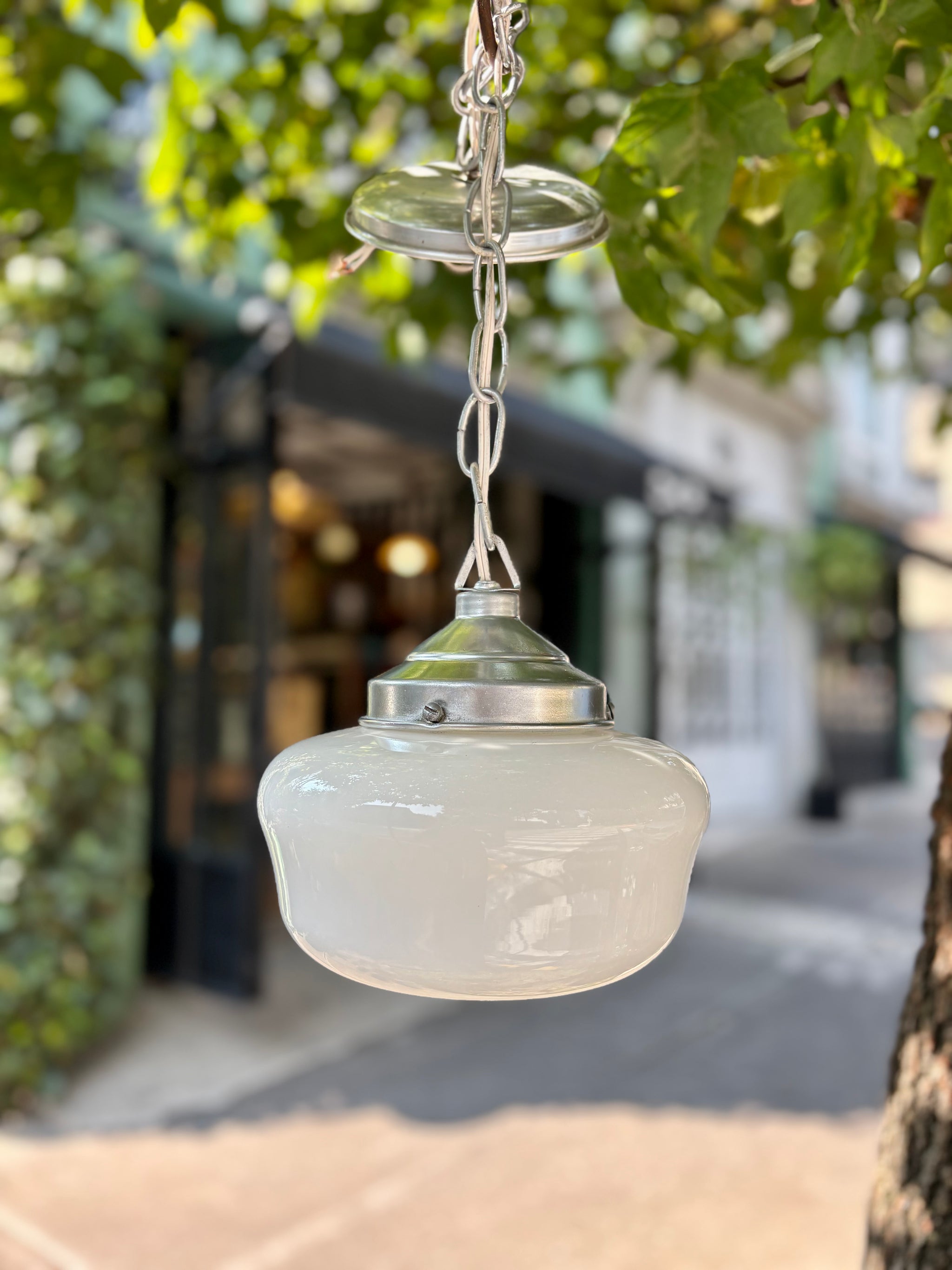 MedidasA. 18 cms D. 22 cms Lámpara retro de opalina blanca, elaborada a mediados del...