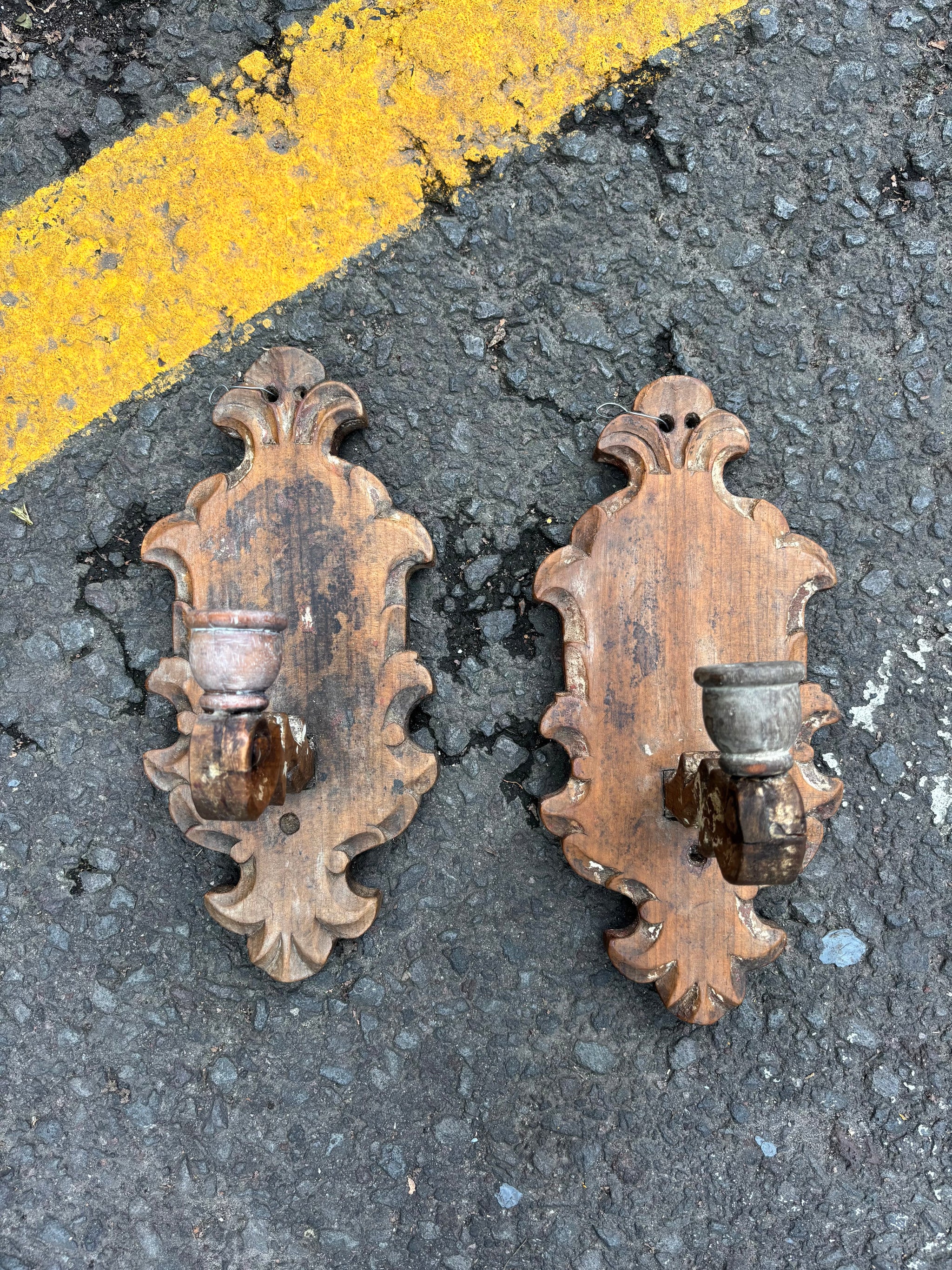 Precio por el par! MedidasA. 34 cmsL. 18 cmsF. 16 cms Candelabros de pared tallados...