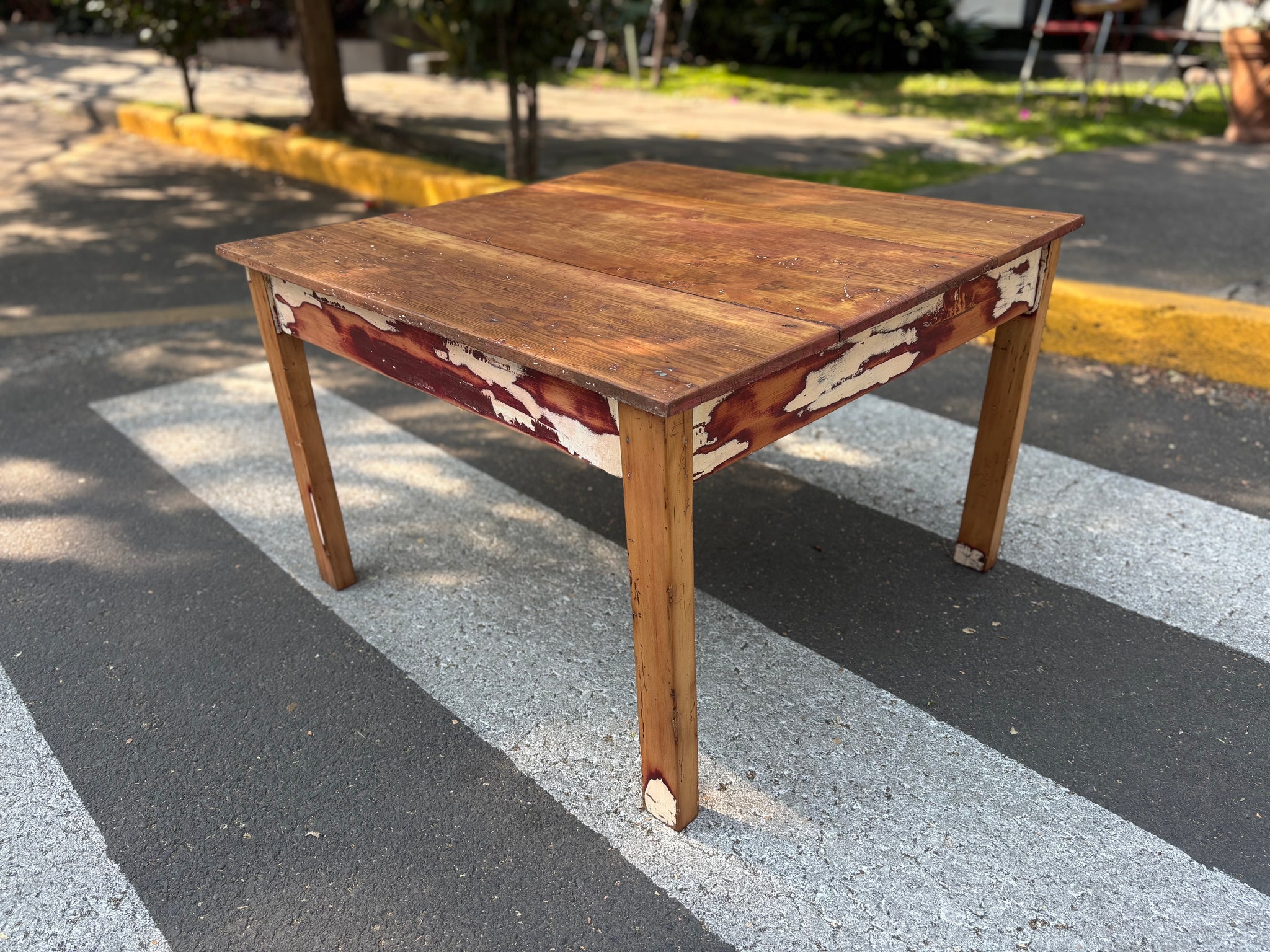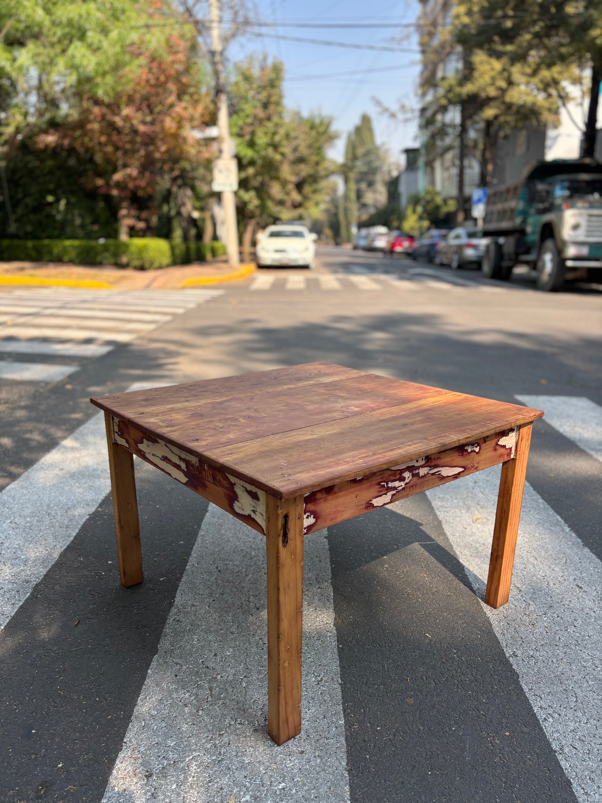 MedidasA. 53 cmsL. 80 cmsF. 80 cms Mesa baja cuadrada de madera, conserva partes de...