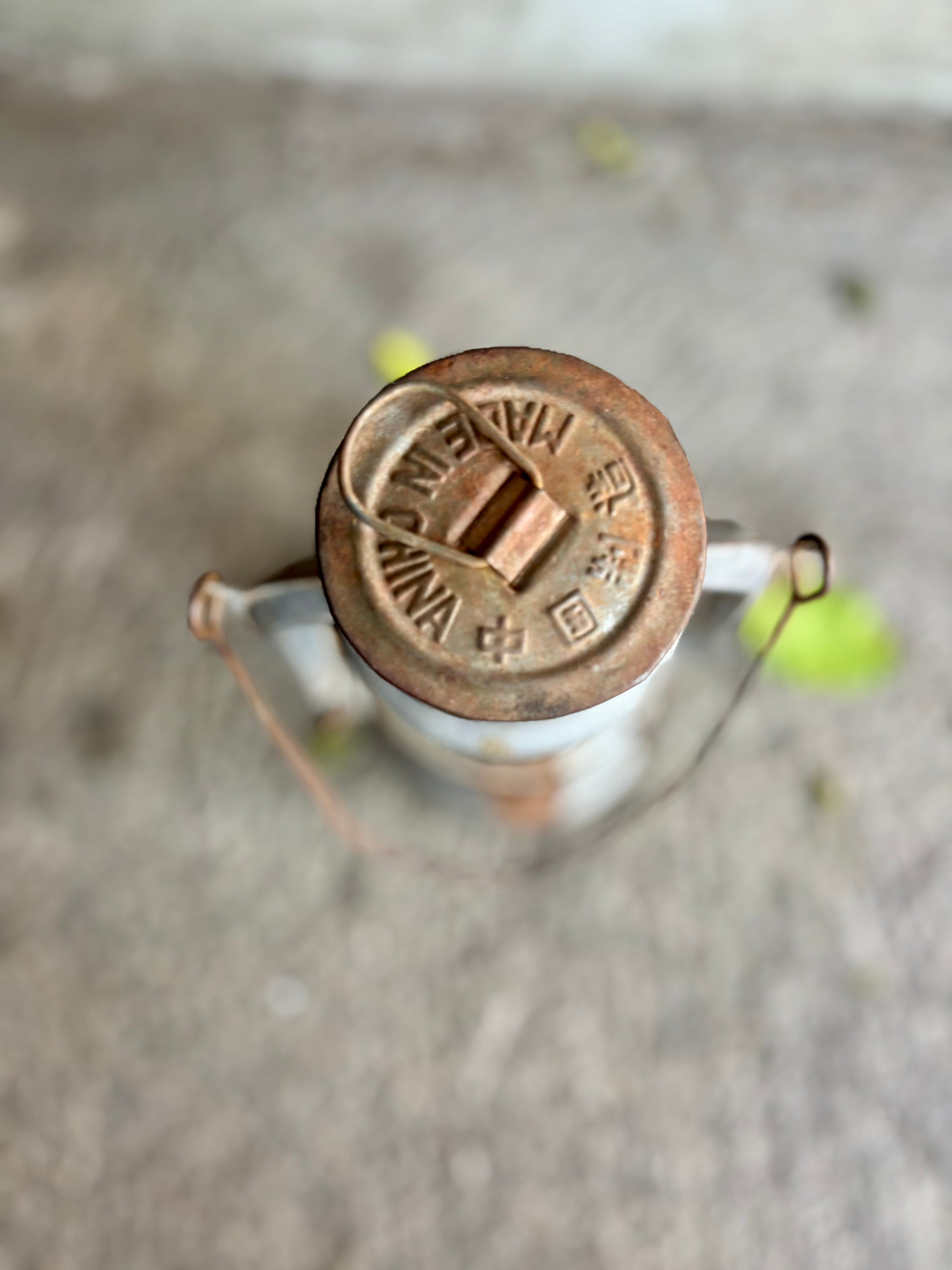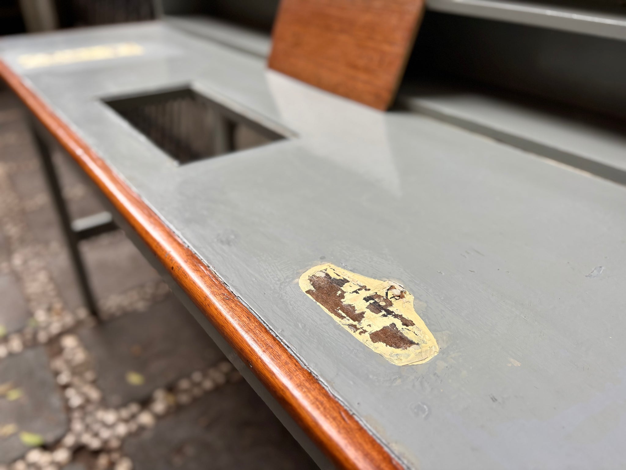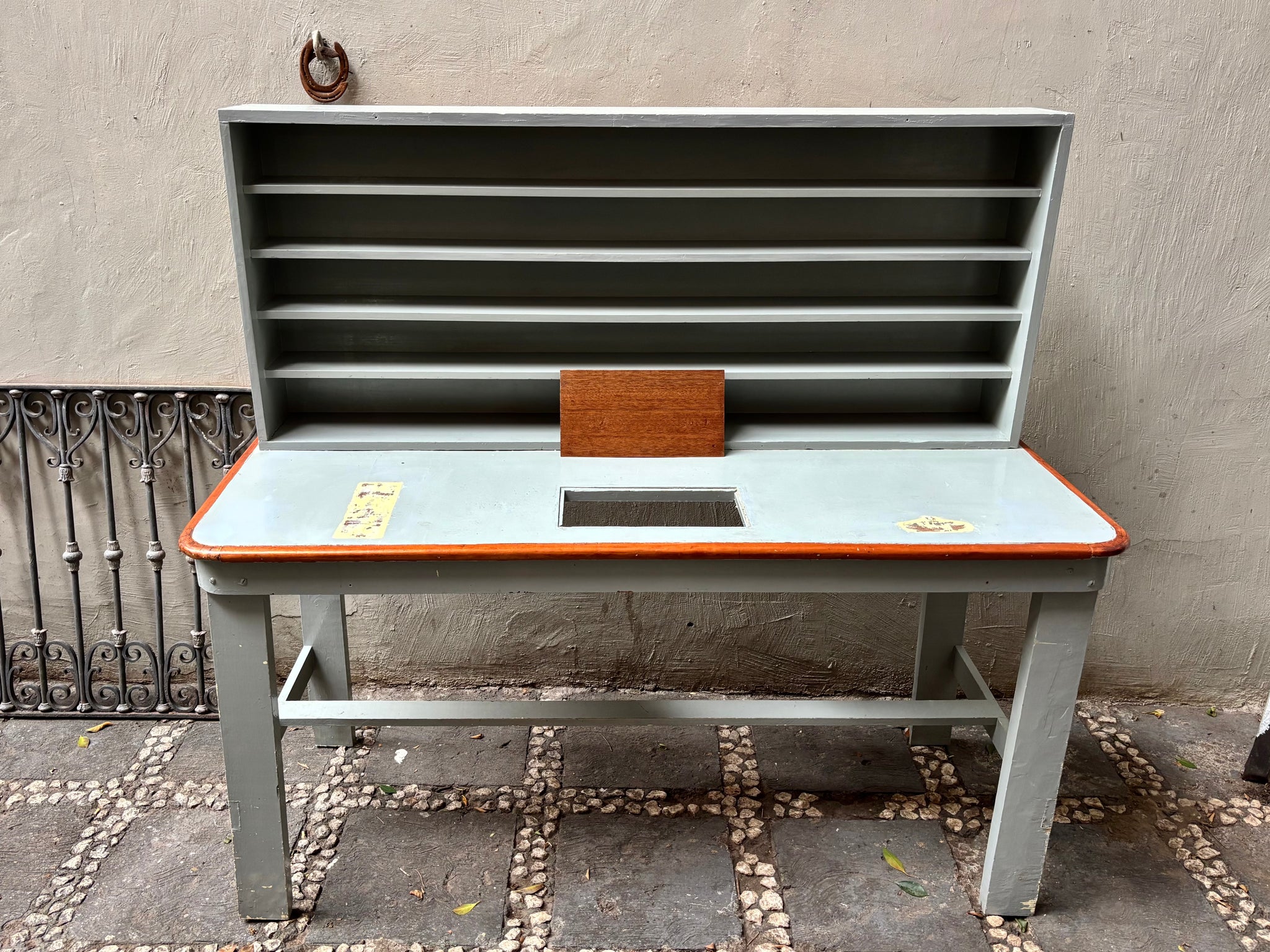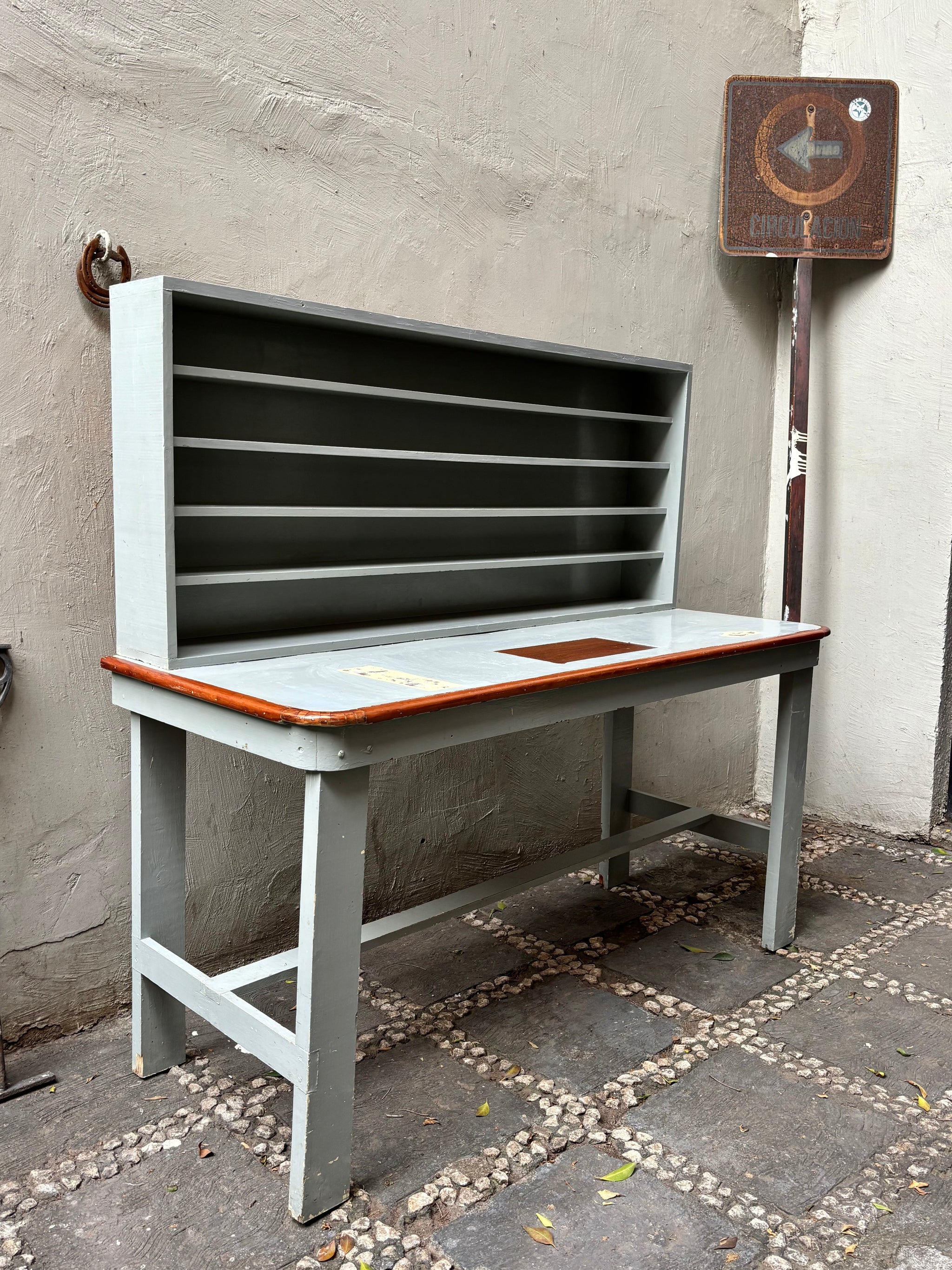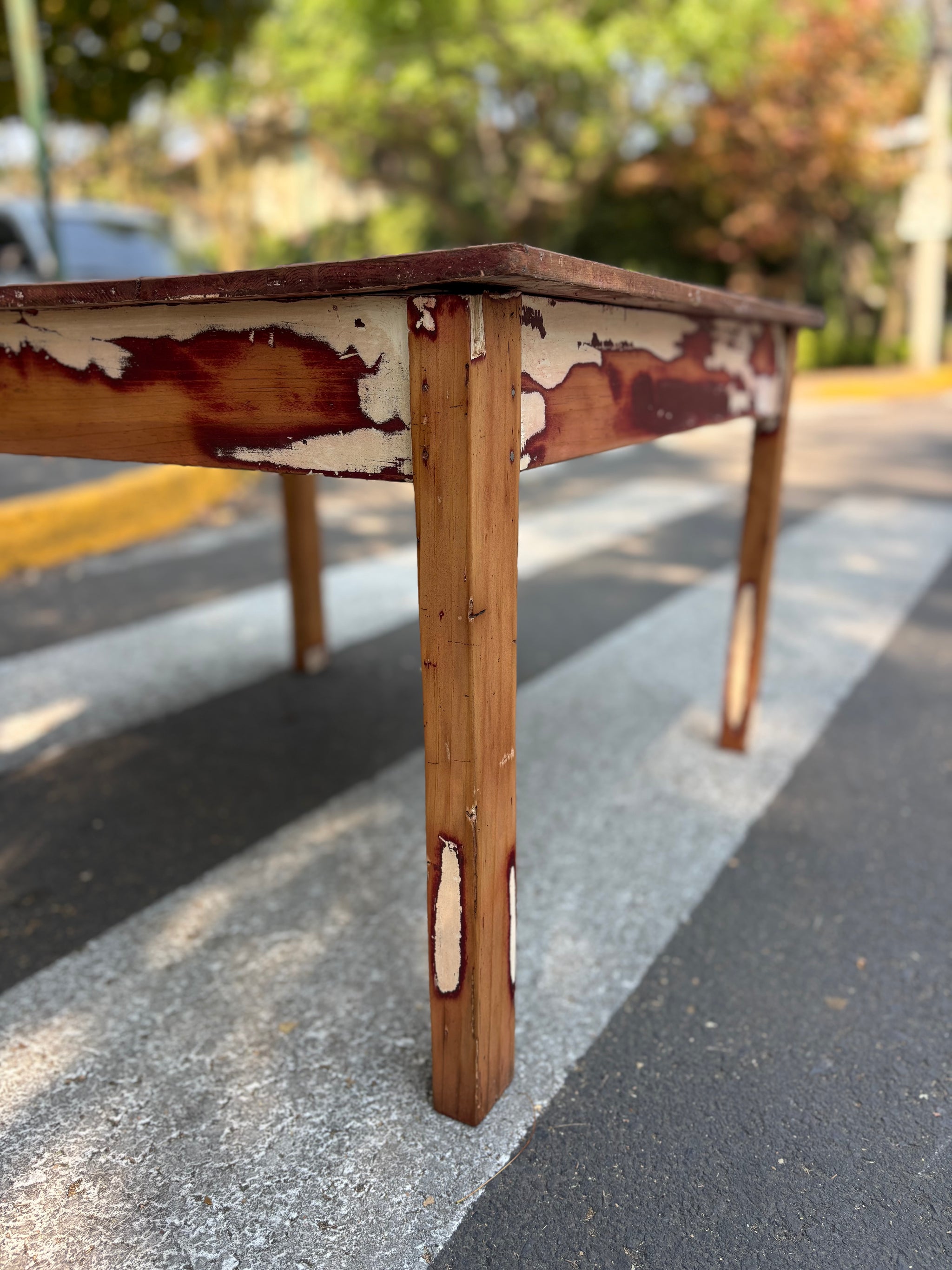 MedidasA. 81.5 cmsL. 1.03 mtsF. 63 cms Mesa de cocina antigua, lámina con cubierta de...