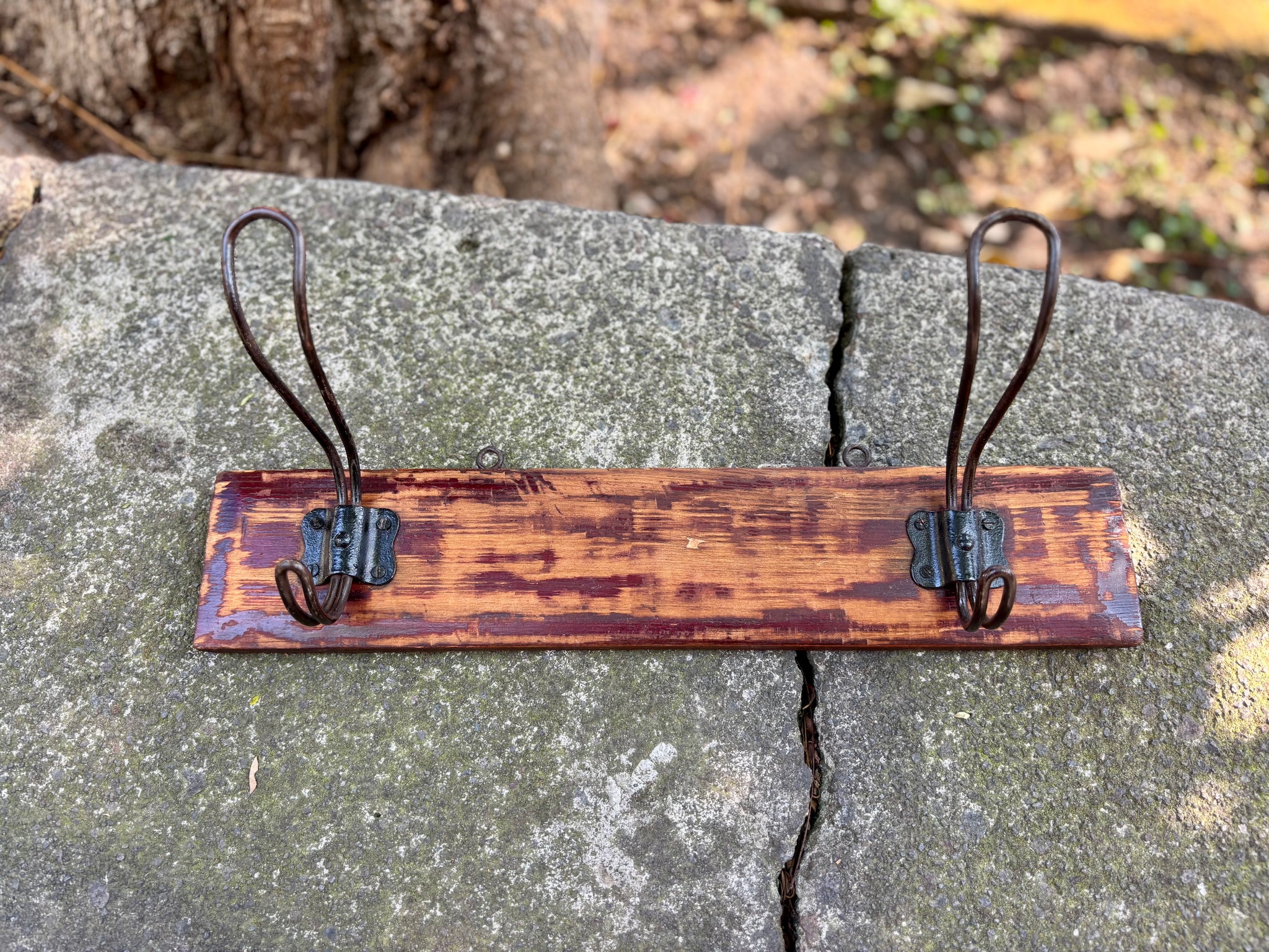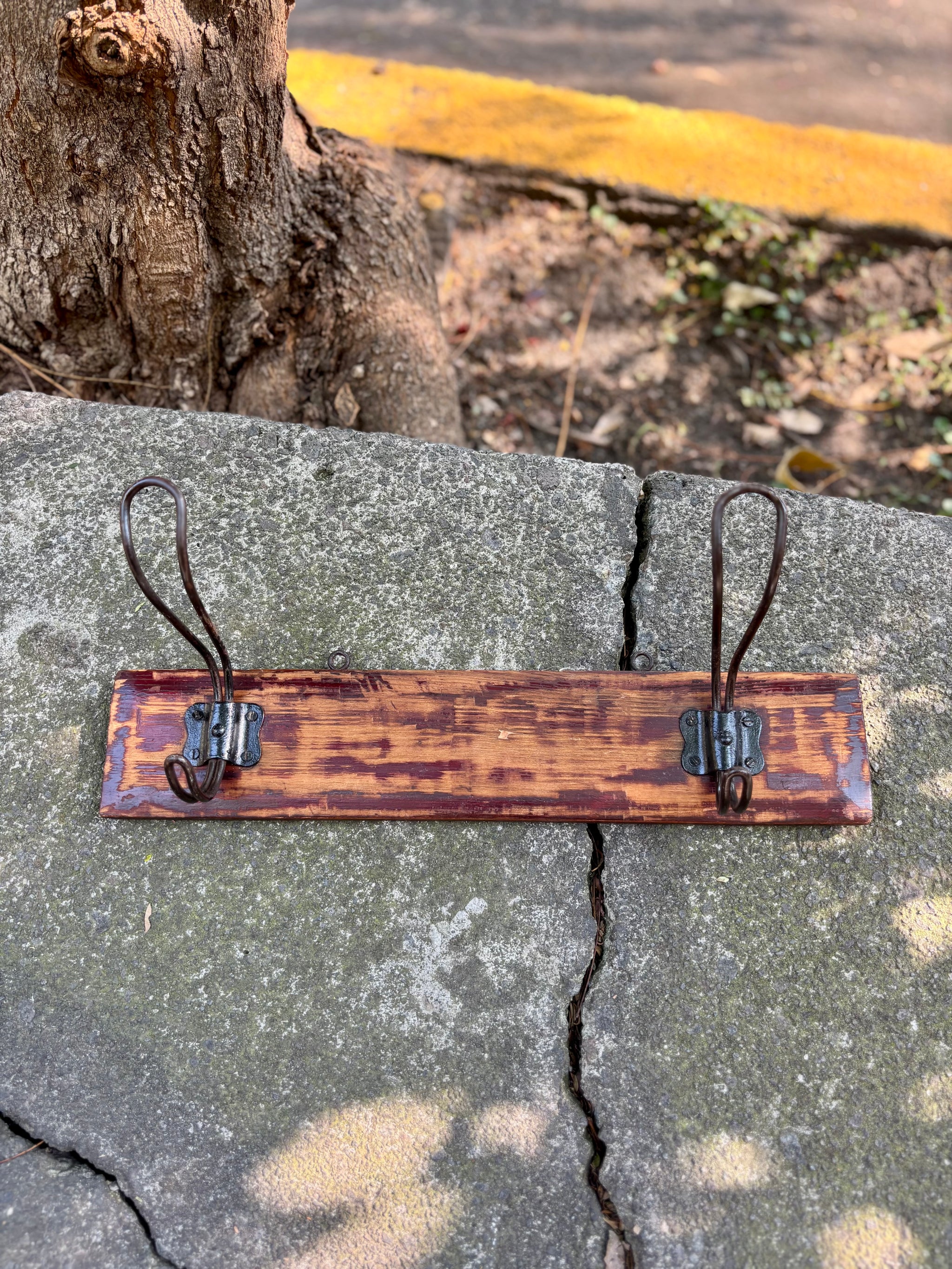 MedidasA. 13 cmsL. 36 cmsF. 11.5 cms Perchero antiguo con base de madera con pátina,...