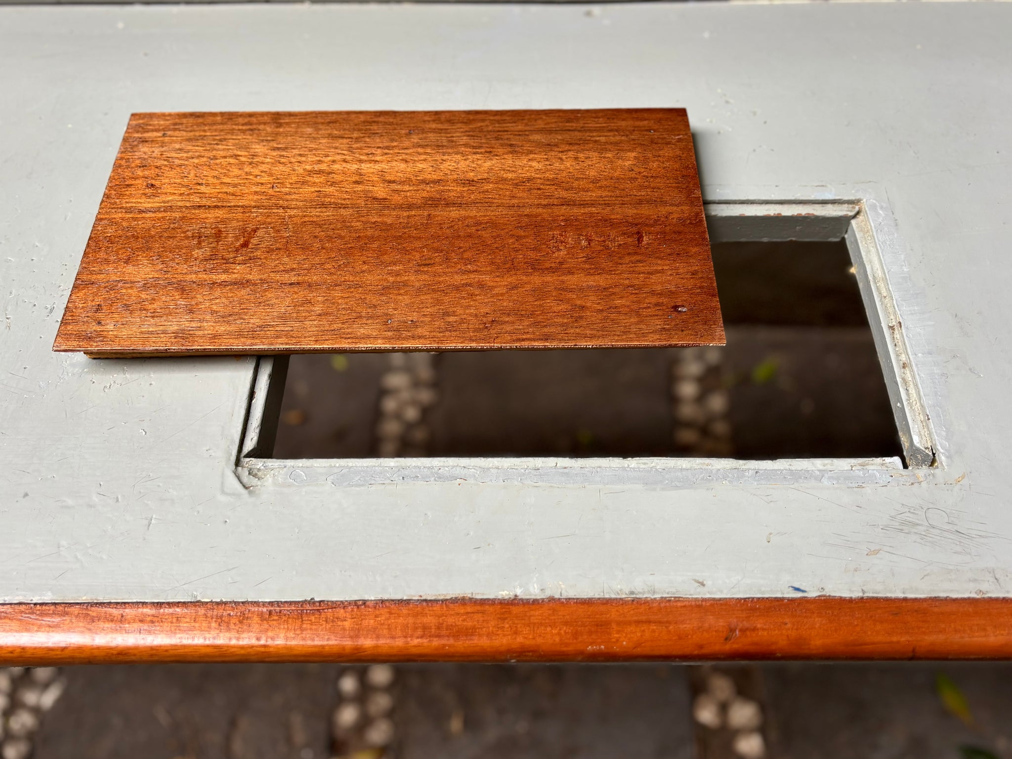 MedidasA. 82 cmsL. 86 cmsF. 71 cms Mesa de sierra de mano artesanal, utilizada en talleres...