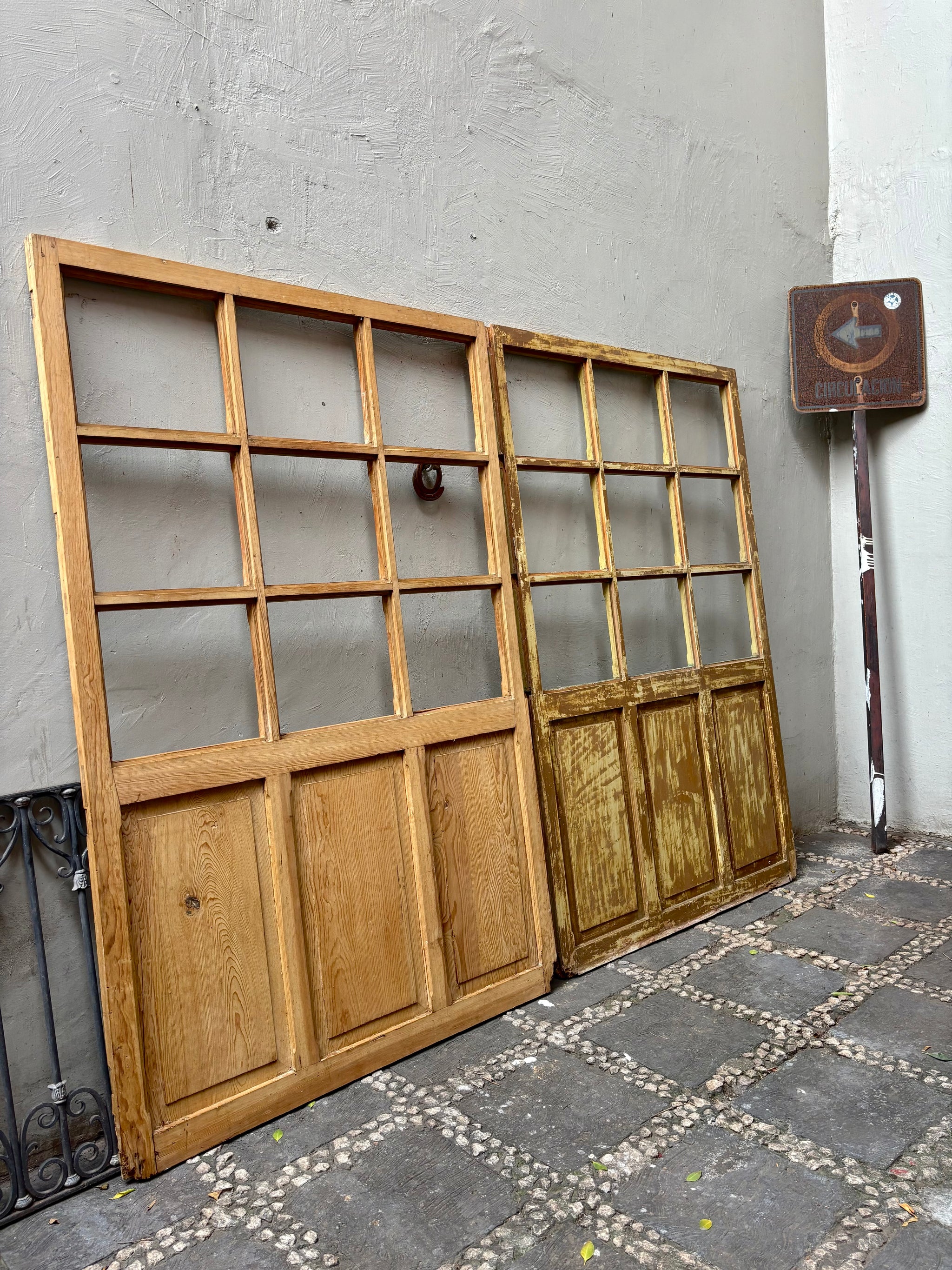 Antigua ventana doble de madera, conserva sus herrajes originales, México, principios del siglo XX. A. 1.13...